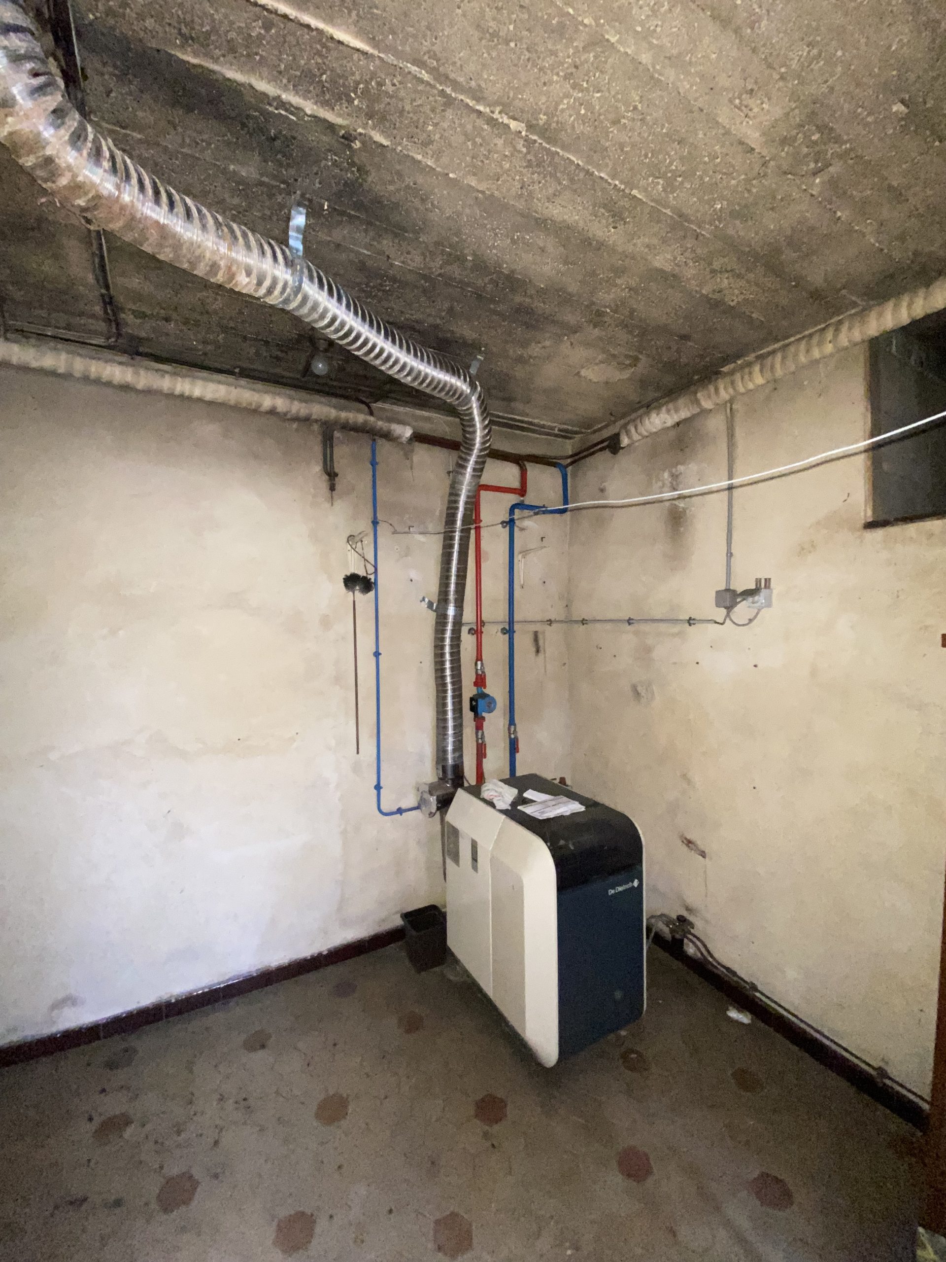Et au rez-de-jardin : débarras/buanderie et chaufferie. Chauffage central au fioul.