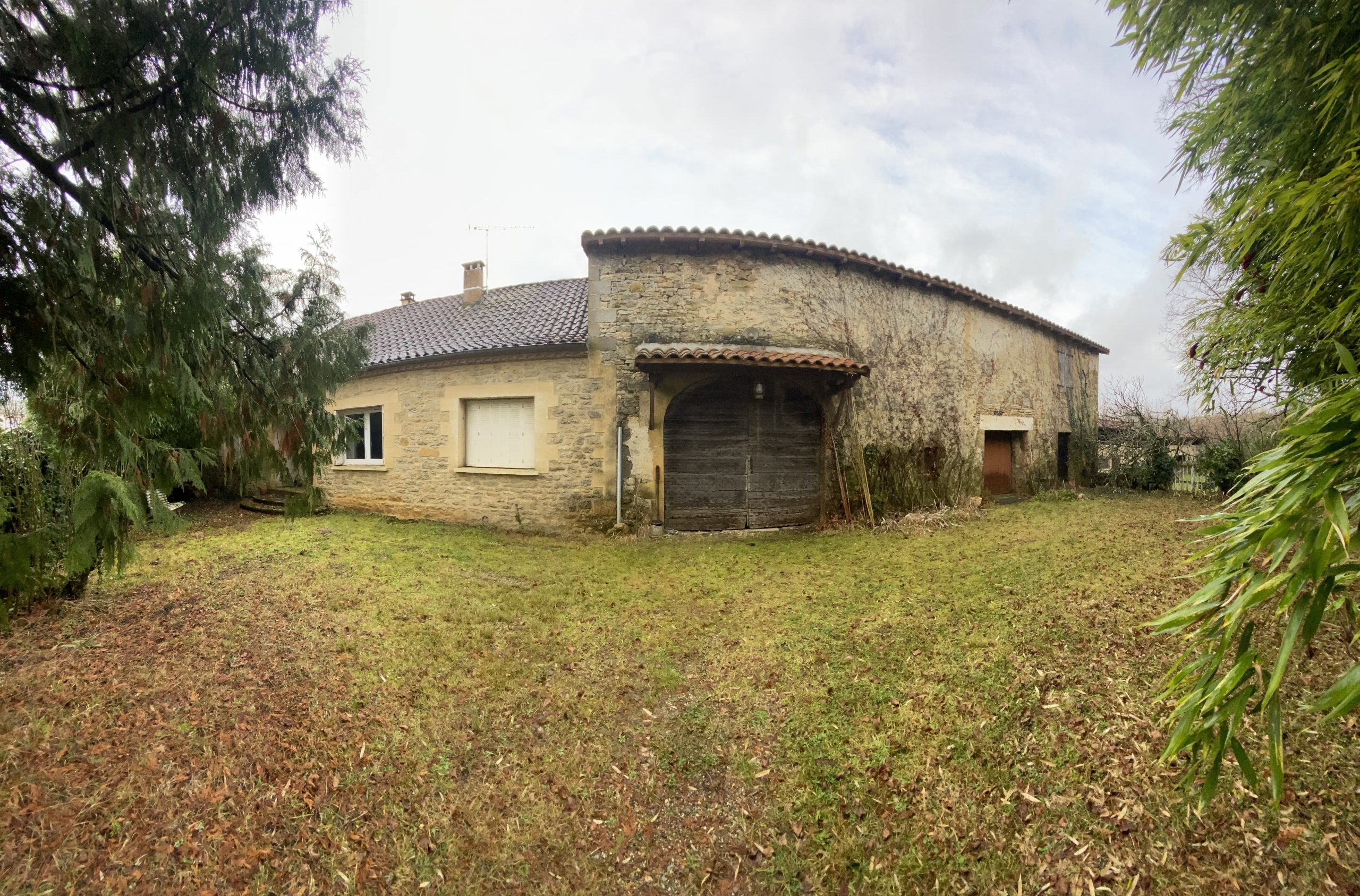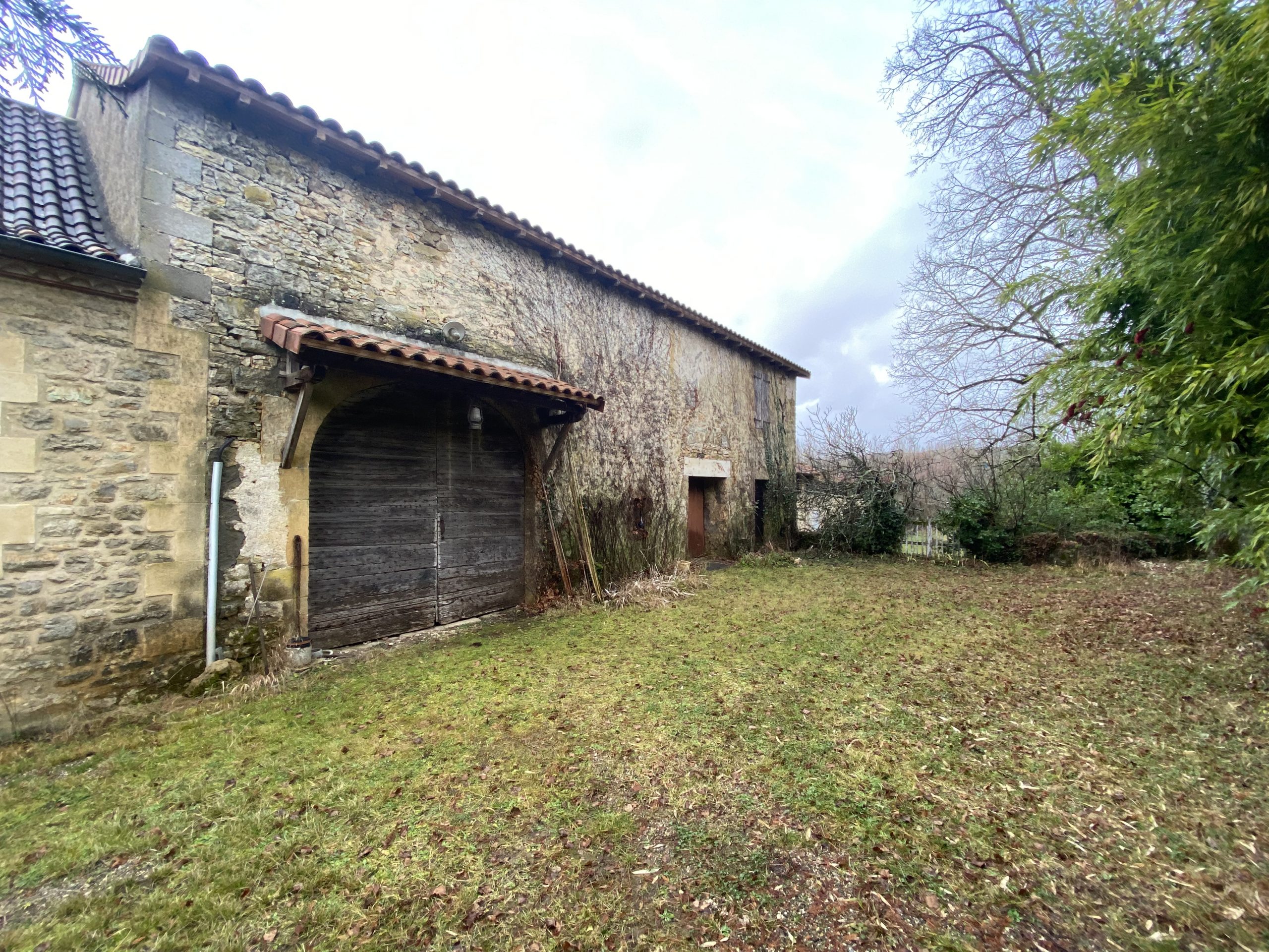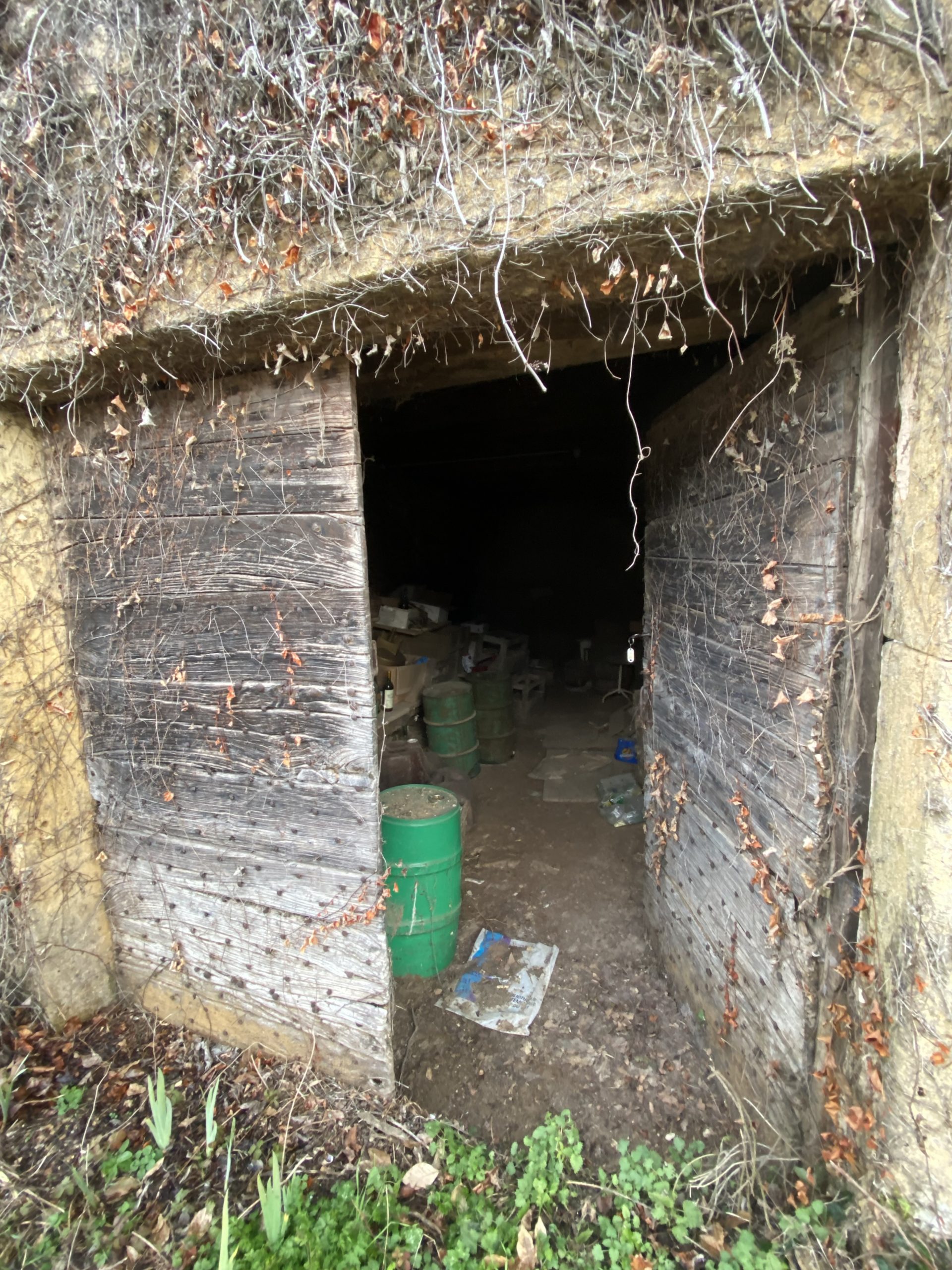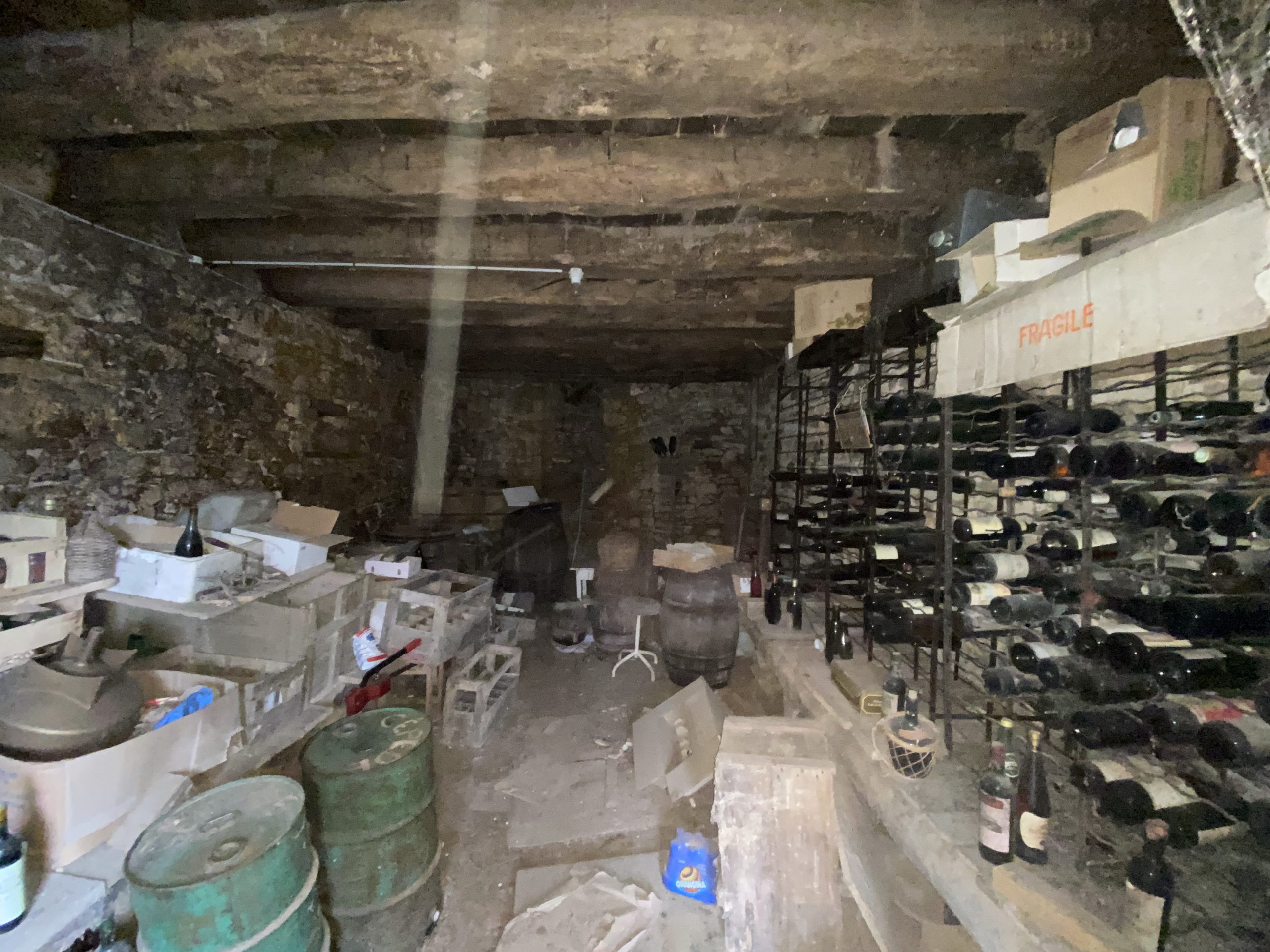 Grange en pierre attenante de +-100m2 au sol avec 2 caves à vin de 26m2 chacune, puit, garage et débarras.