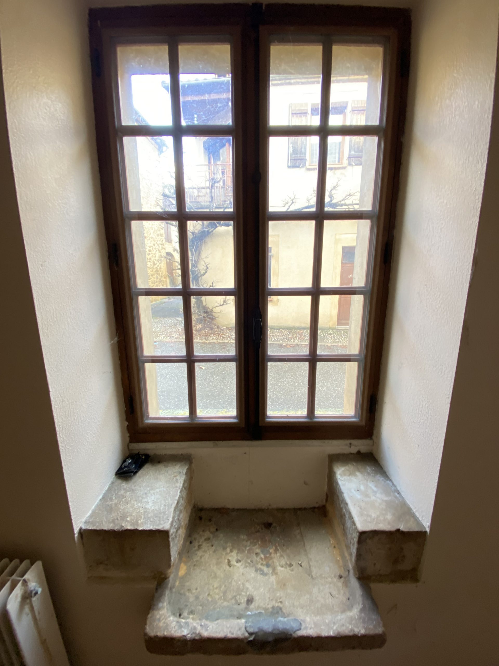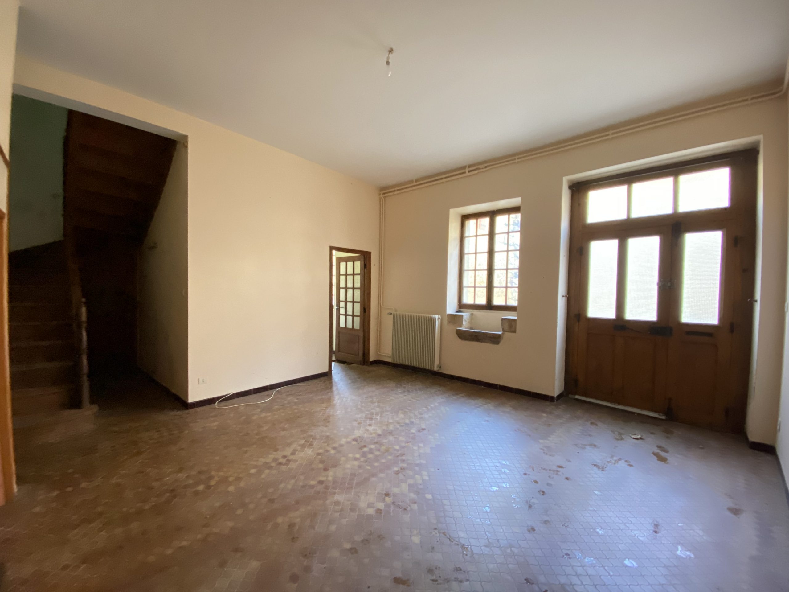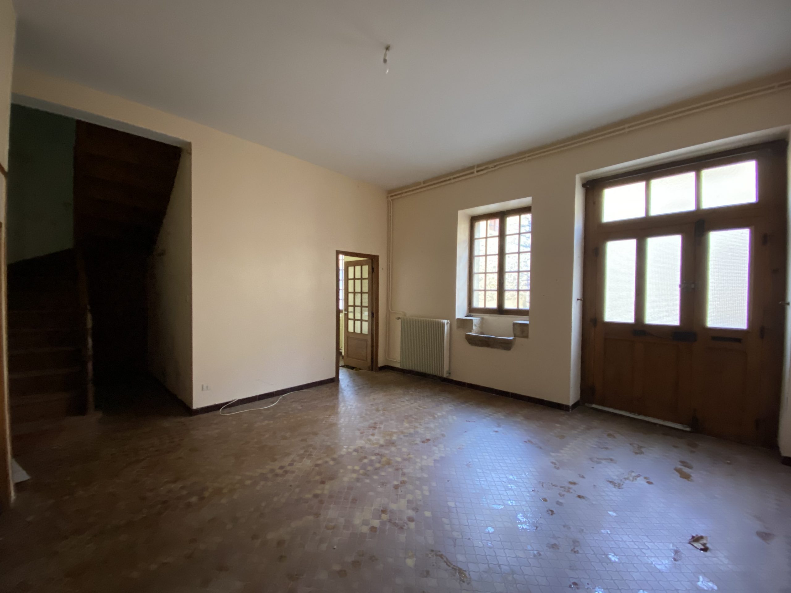 Centre village, proche commodités, maison de bourg mitoyenne en pierre de 70m2 (64,70m2 habitables), sur 2 niveaux. 3 pièces. Cadastrée Section AB parcelle n° 725.