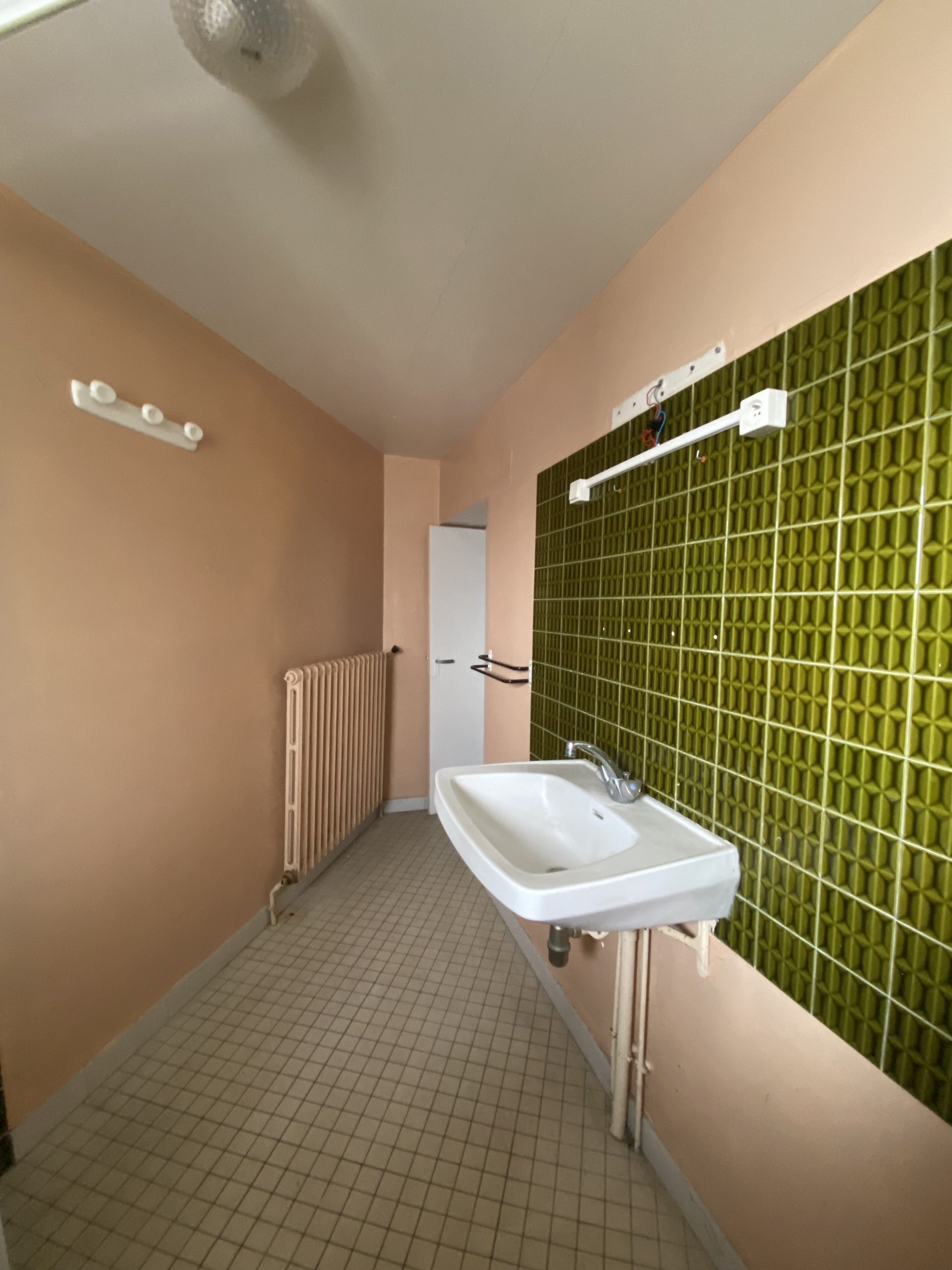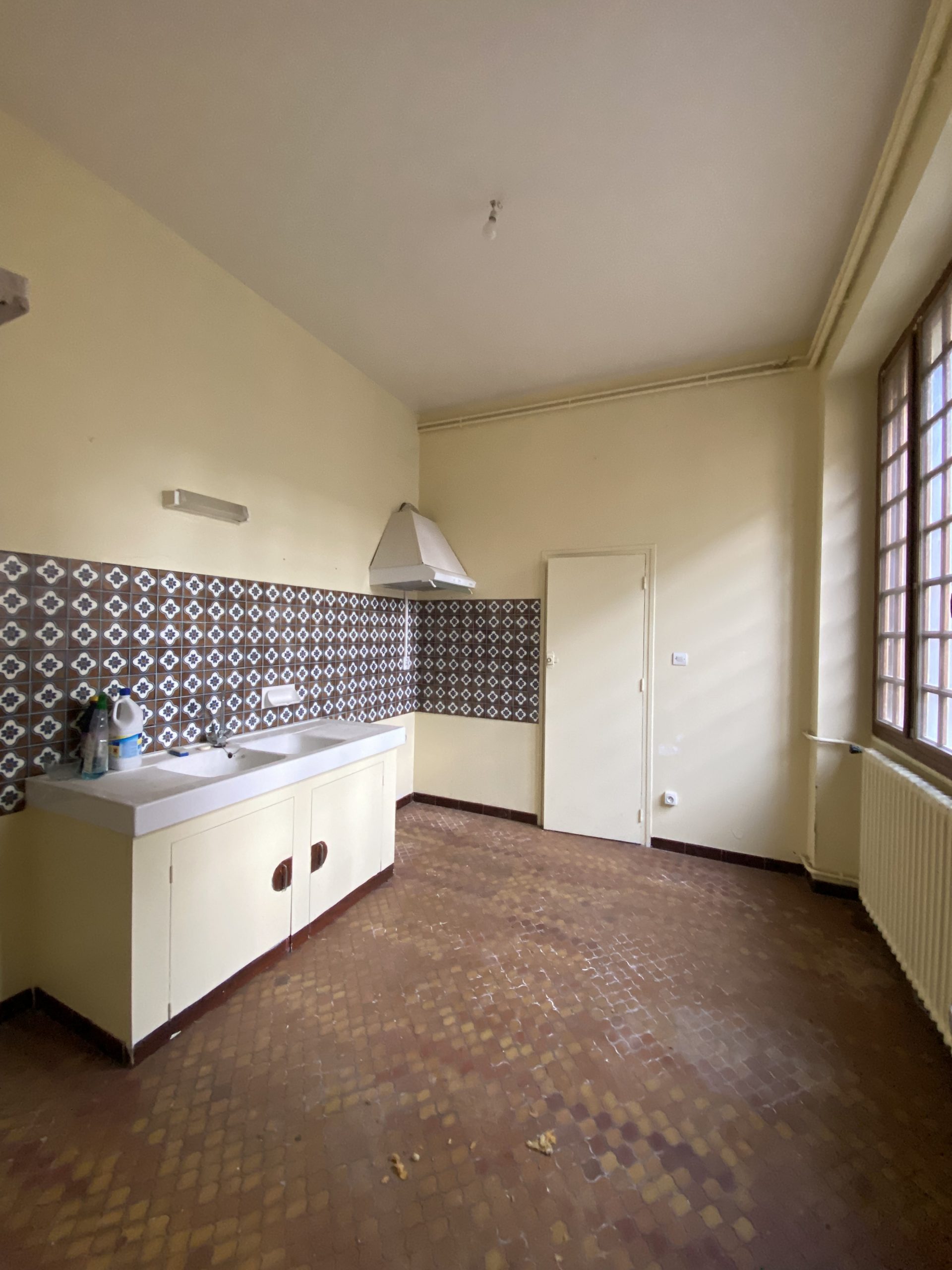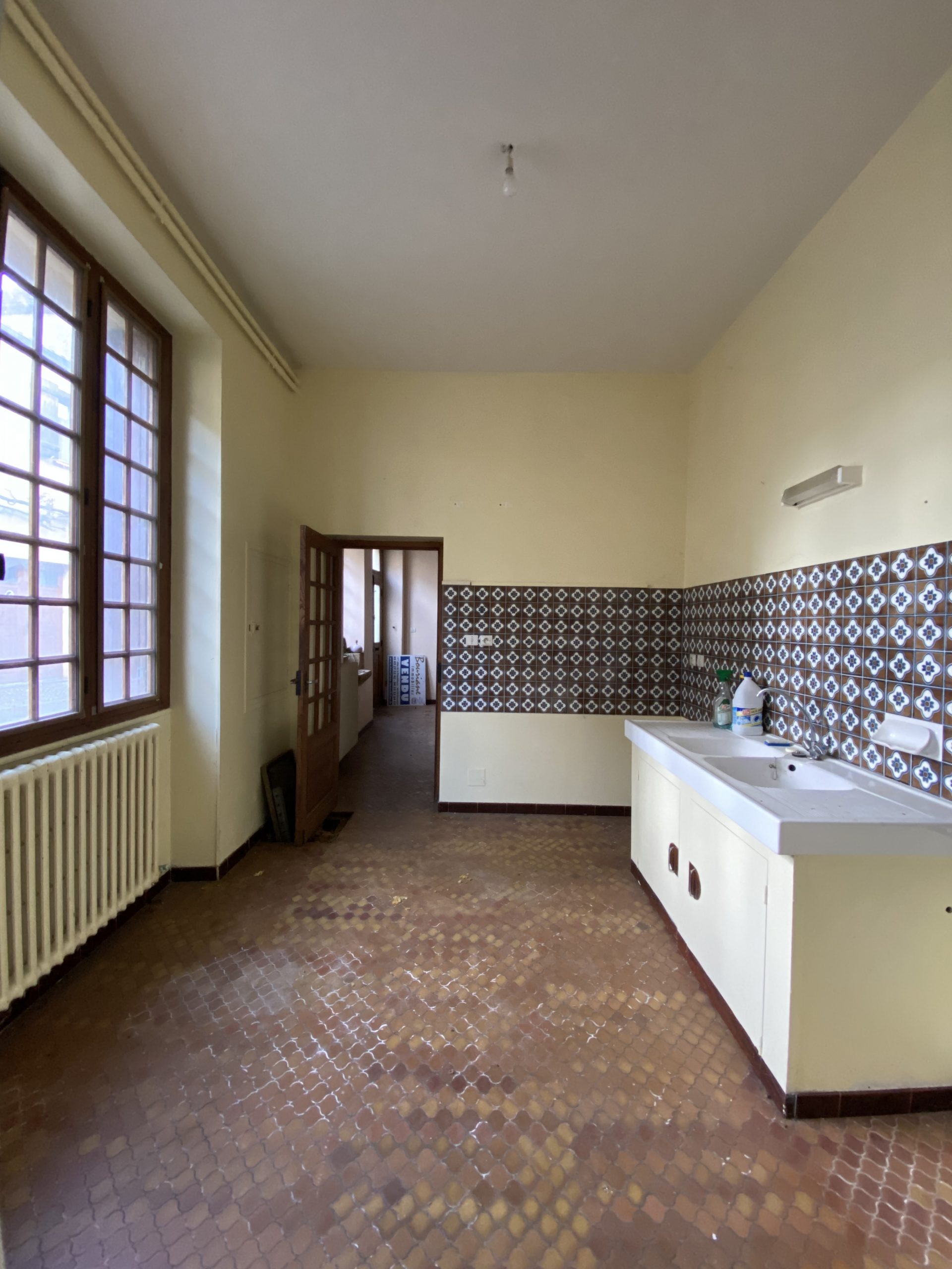 Centre village, proche commodités, maison de bourg mitoyenne en pierre de 70m2 (64,70m2 habitables), sur 2 niveaux. 3 pièces. Cadastrée Section AB parcelle n° 725.