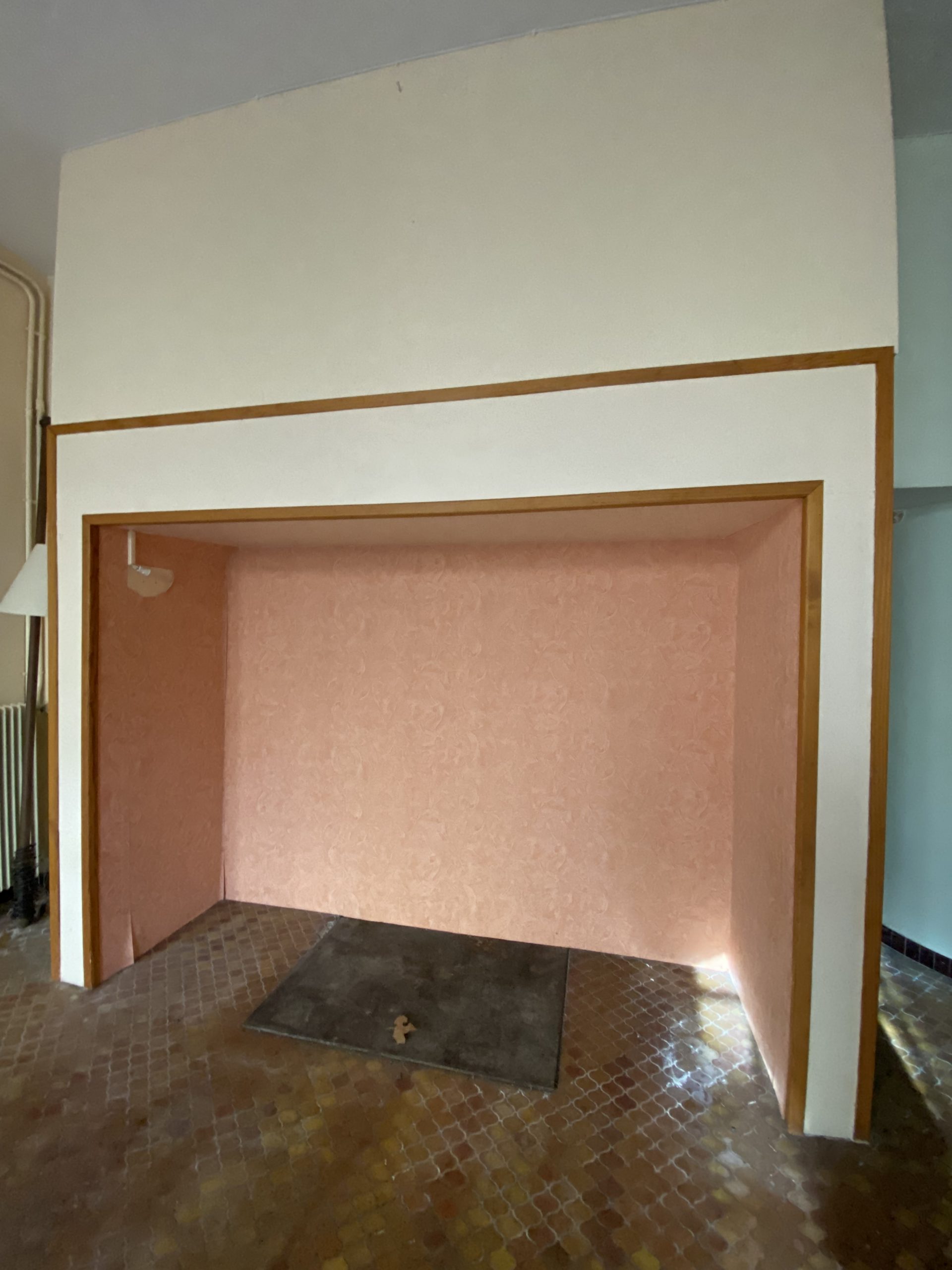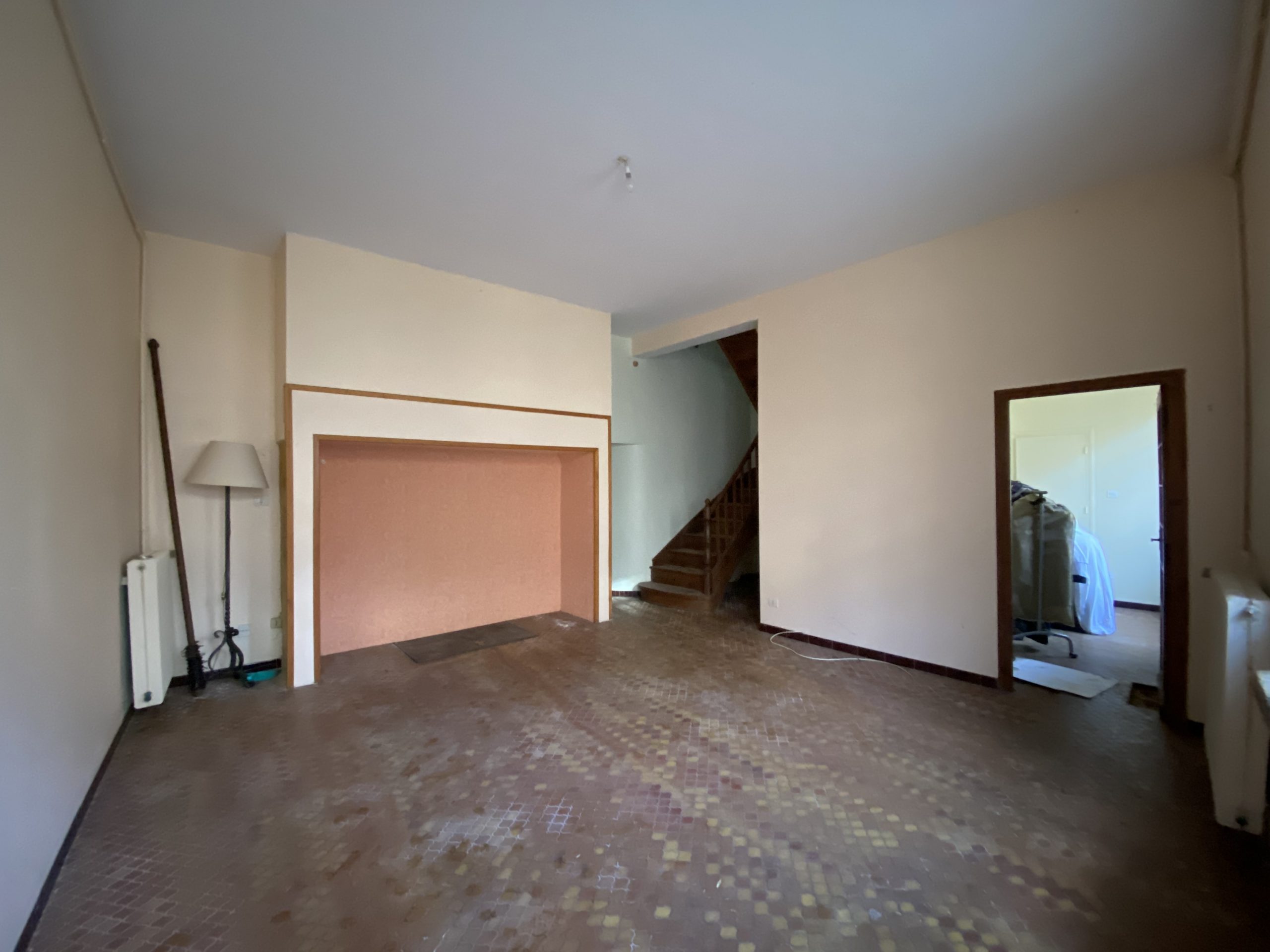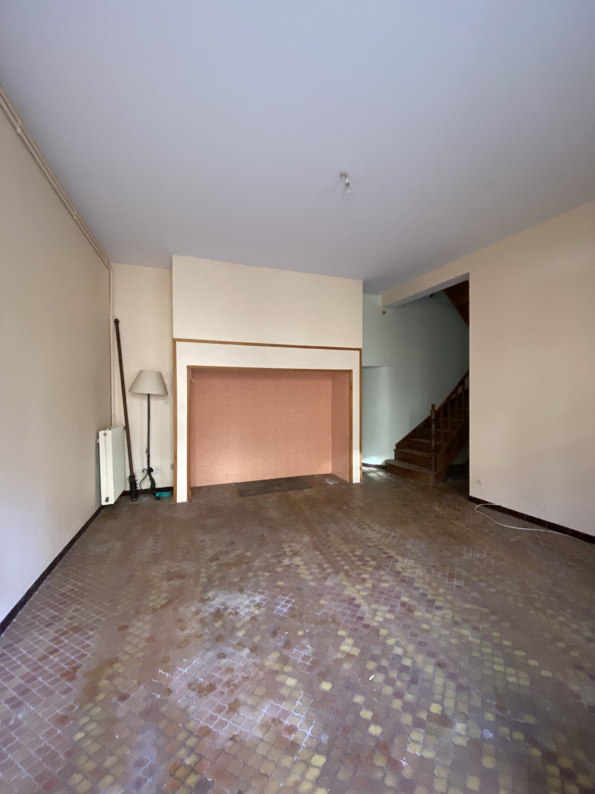 Rez de chaussée : 1 salon/séjour avec cheminée et placard sous escalier, 1 WC, 1 cuisine indépendante avec accès chaudière.