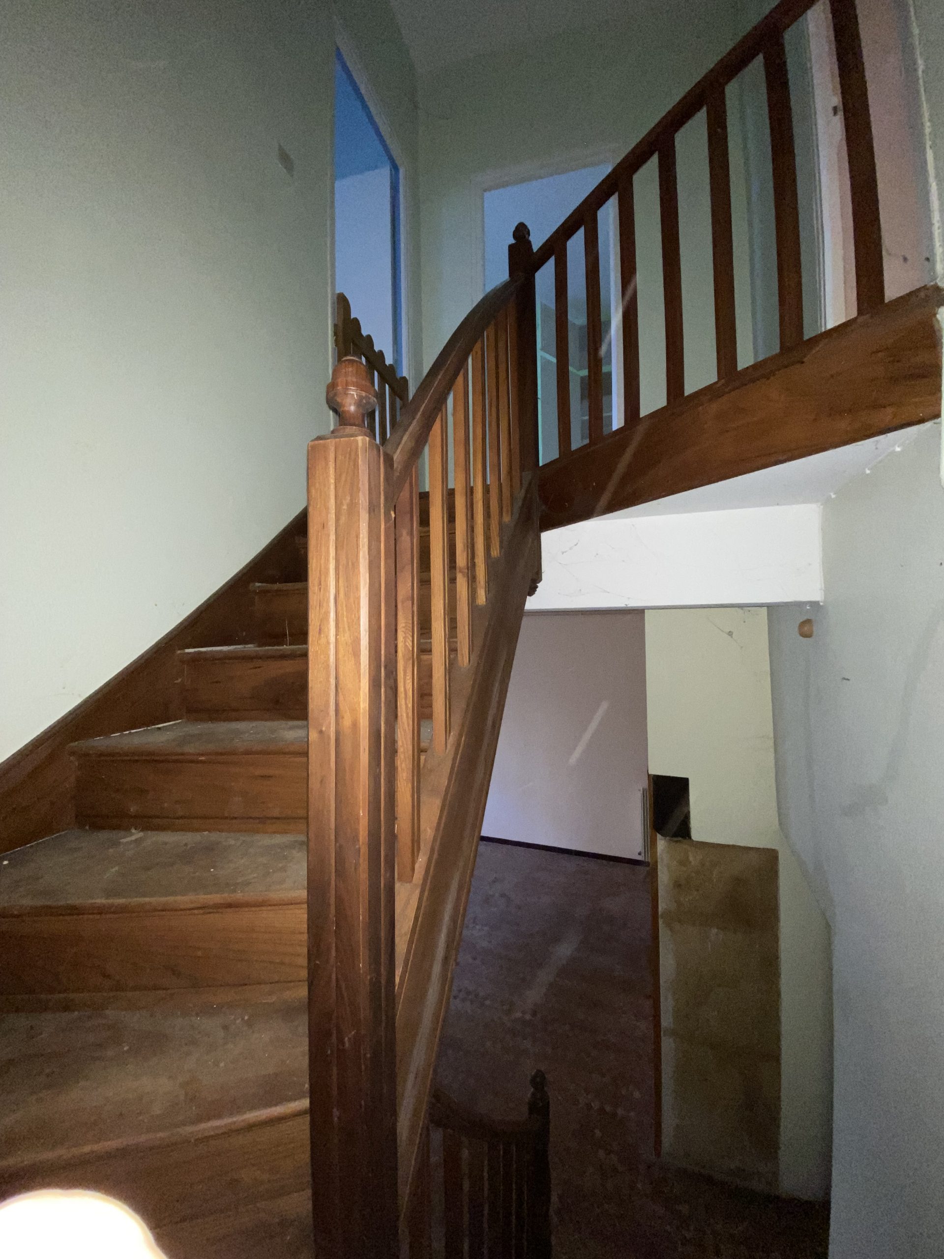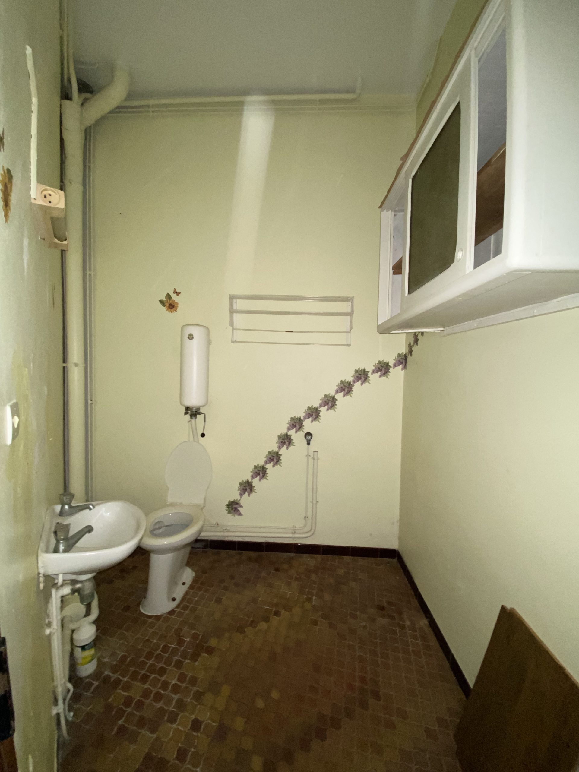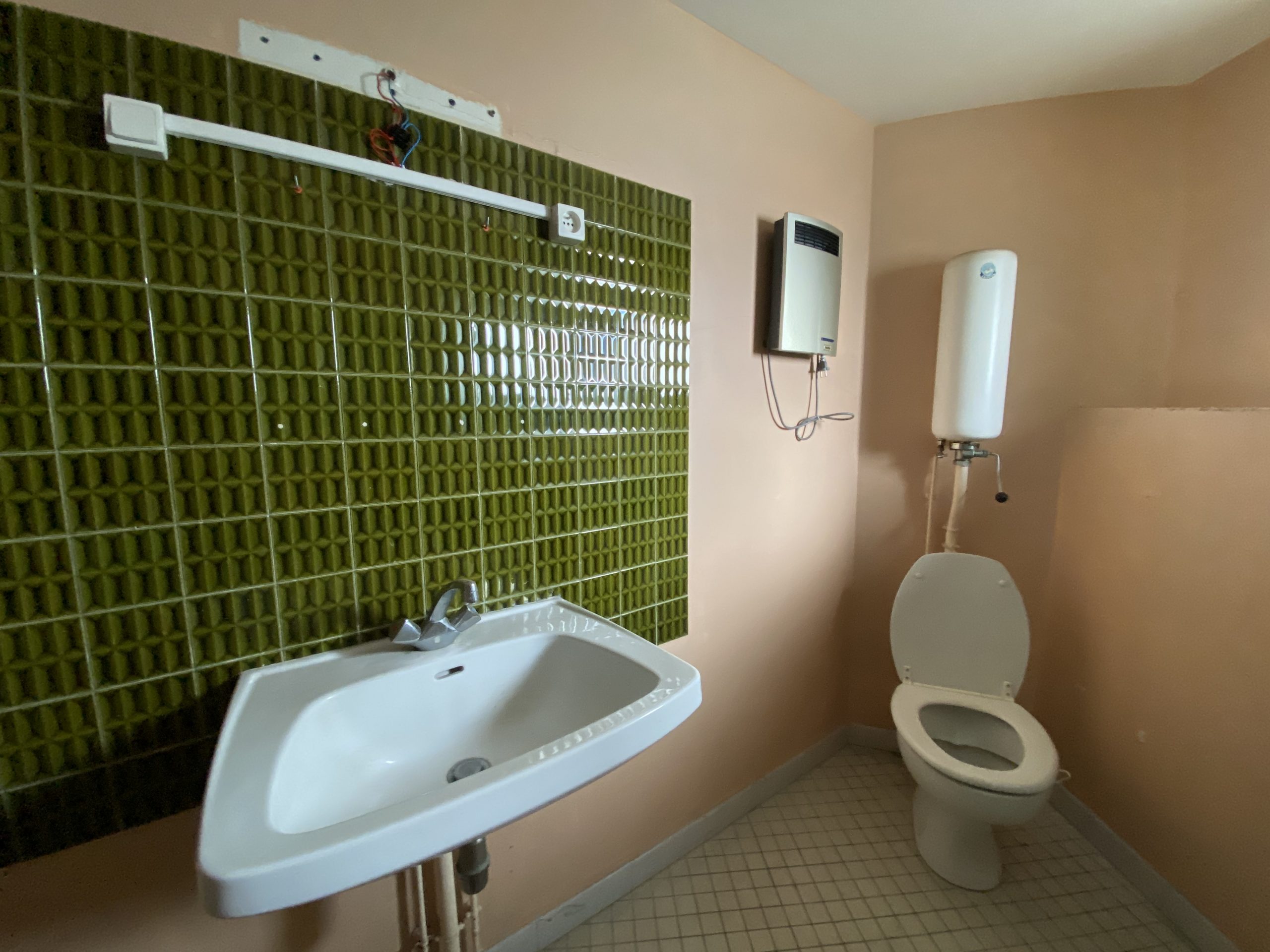 Rez de chaussée : 1 salon/séjour avec cheminée et placard sous escalier, 1 WC, 1 cuisine indépendante avec accès chaudière.