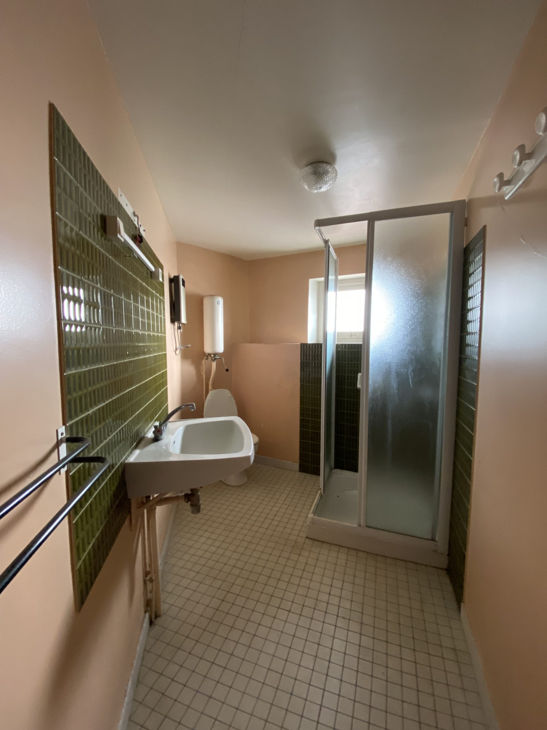 À l’étage : 1 salle d’eau/WC combinée (5,2m2), 2 chambres doubles (avec placards).