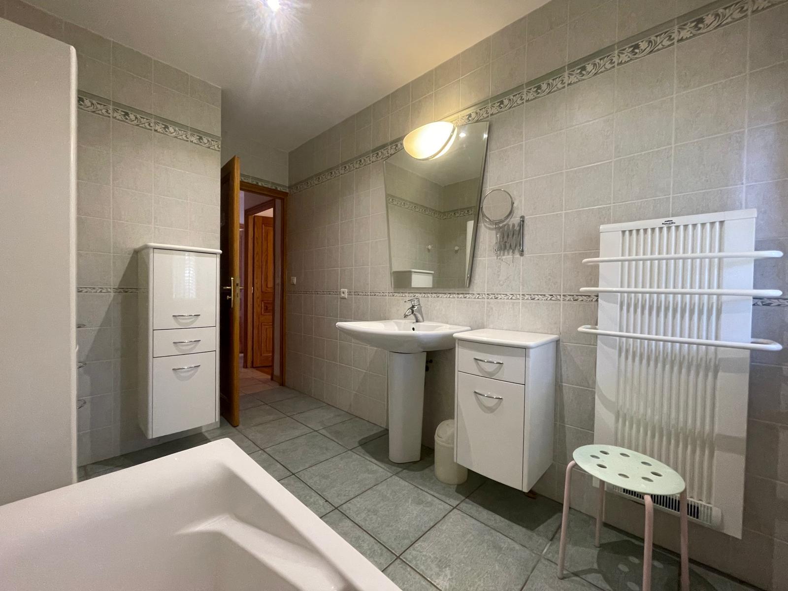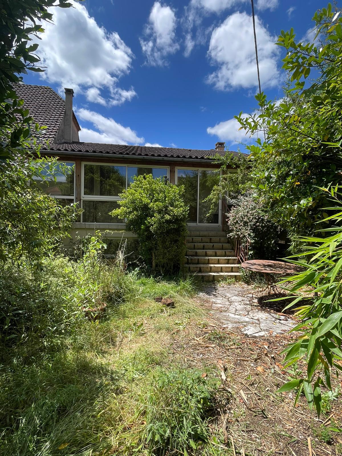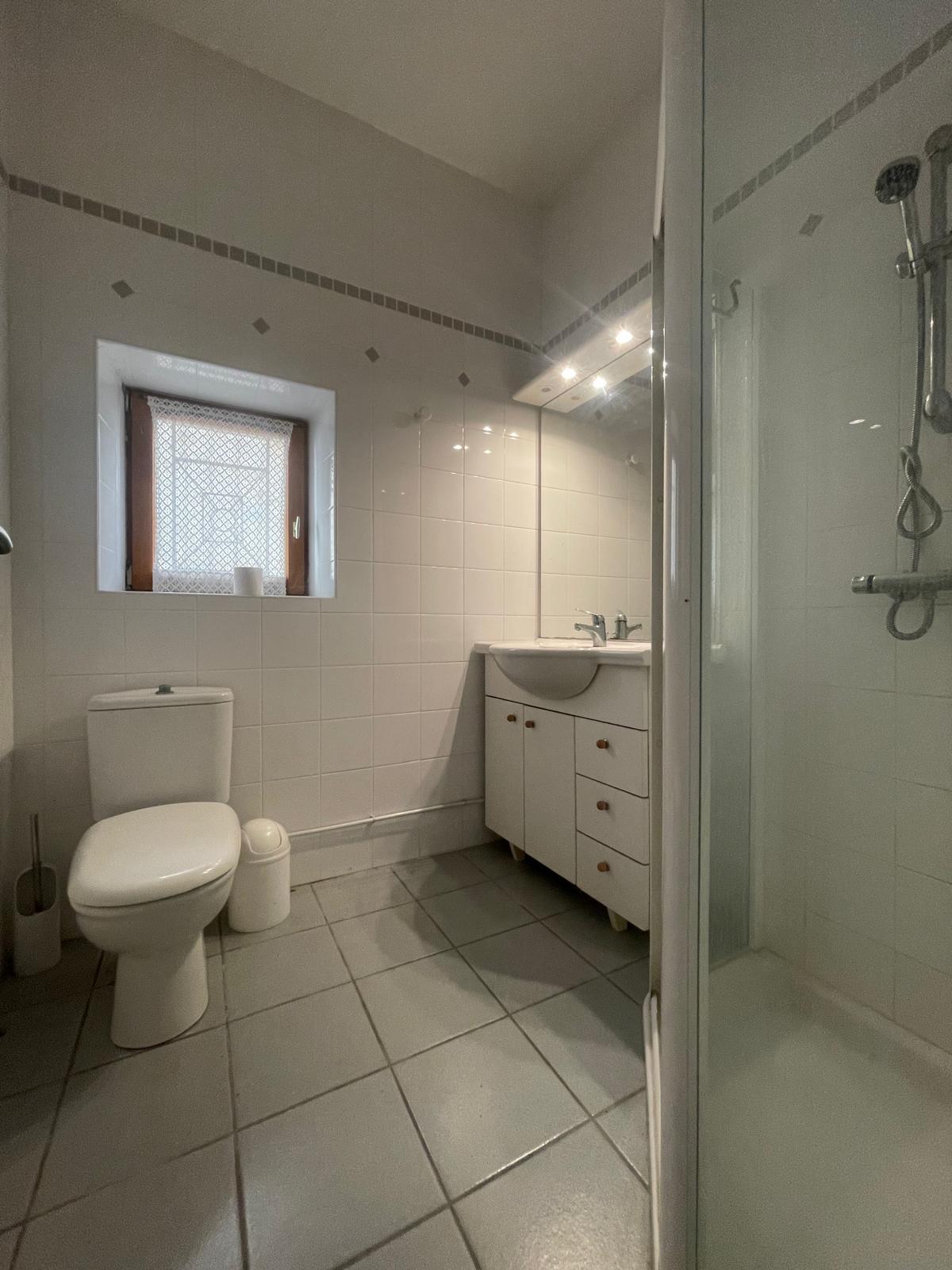 Avec au rez de chaussée/jardin/rue : couloir, chaufferie, bureau/buanderie, 1 chambre double indépendante avec salle d’eau/WC combinée (douche), 2 garages totalisant 38m2, pouvant accueillir 1 voiture chacun.